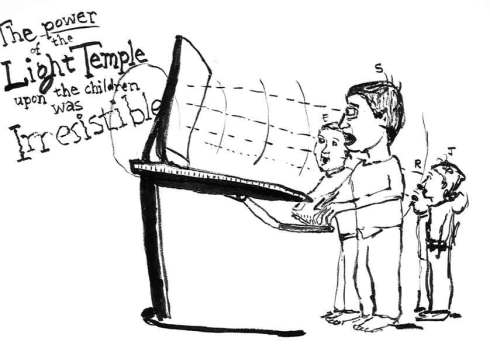 A quick sketch from the sidelines at my sister’s house … Simon, Emma, Raphael and Jude all captivated by an internet game called THE LIGHT TEMPLE … be warned … addictive!