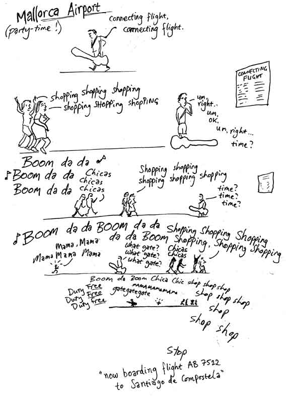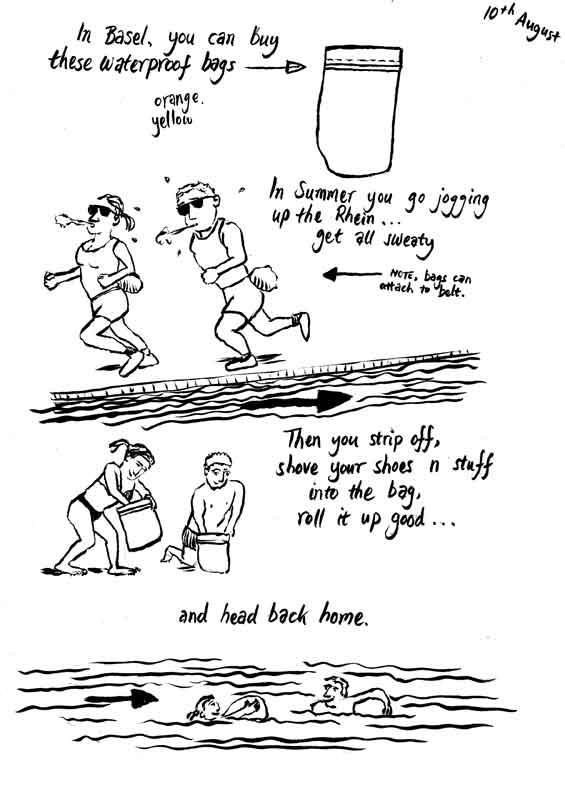 So the story goes like this – I had a gig in Basel, Switzerland – at this great little artist-run place called Schqrzwaldallee which was in an old train repair-yard. I met all the people who ran it who were very nice hipster artists – very nice people. I was setting up, and a few people had arrived, I had bare feet on concrete, I was holding my guitar – and there was this nice little lamp on the ground with a shade on it – it was on, I reched down to move from one side of my guitar pedals to the other – as my hands closed around the base of it (made of metal)- I had this vibrating sensation throughout my upper body – I knew in my mind that I was being electrified but I couldn’t open my hand to release the lamp. An involuntary noise came from my throat and I could see the people at the door looking at – it all happened very much in slow-motion – I noticed a lot of things in what was probably a short space of about 3-4 seconds of the current passing through me – I fell over on my knees, which must have knocked the lamp out of my hand. I was very shaken up … everyone rushed in – I think everyone was in shock (no pun intended). I had a lot of adrenaline pulsing through my veins and was apparently as white as a sheet. The artists fussed around and couldn’t believe it was the lamp … they thought it might’ve been my guitar … I didn’t know which it was … could’ve been both … I could’ve bridged the electricity between the lamp and the guitar or the lamp and the concrete … I was certain it was the lamp. I got a little cranky at them suggesting it was the guitar when it clearly happened when I picked up the lamp – their safety switches didn’t switch off either which was also concerning. Anyway – Nadine was adamant that she didn’t want me to play. Nadine’s Dad came in a started giving the artists grief, making suggestions in a commanding voice. It was quite a scene. Anyway, I decided to continue playing – they got a different lamp out. I walked over to pick up my guitar and the lights went out … I panicked and ran away from the setup. They fixed it again … and I decided to man-up and play the gig.