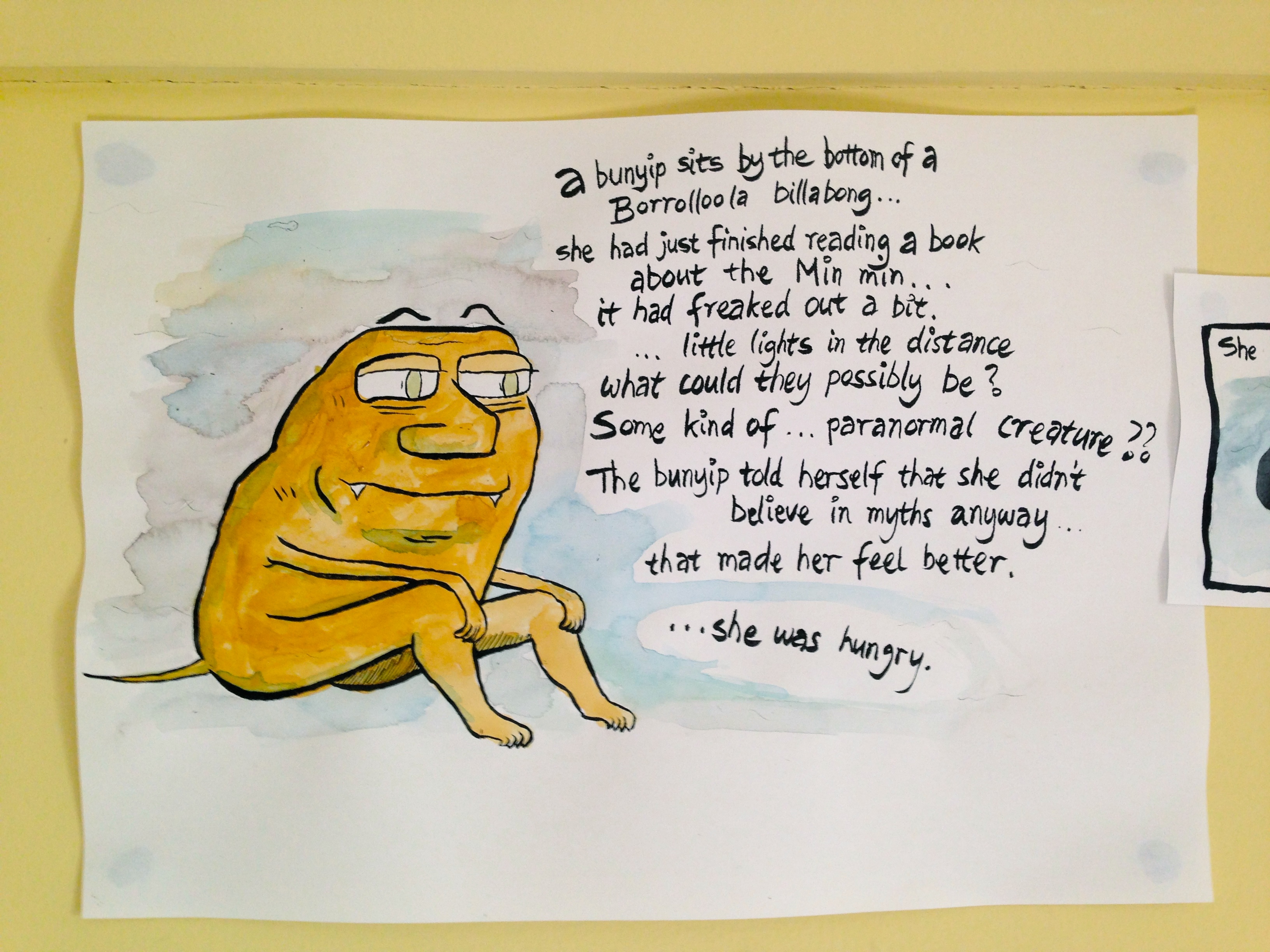 At the Southern end of the Western wall sits Anna Cox’s half-blind sketch of the board members of late 2012 Inflight ARI, let me see who I can recognise there – hmmm … ummm Rob OConnor, Ben Ryan, Nicola Smith, Nadine Kessler, Laura Hindmarsh, Matt Warren, Lucienne Rickards … I can’t tell who the others are, it’s a blind sketch after all, and I can’t actually recall who everyone was on the board at that time, only two years ago. That’s the problem I find with ARI’s, documentation is almost impossible, who remembers who did what, it’s all in the collective memory, and everyone forgets who remembers what, when, huh? But I recall some things myself, I’m sure half of them are wrong. I don’t mean to imply by all of this that all things that happen in Inflight are seminal and ought to be remembered, not at all. ARIs aren’t important in the GRAND scheme of things. But some things can be very very very very interesting. This picture of Anna’s was made just before Inflight carked it, just before Arts Tas got pissed at them for changing their name, bad branding decision they said (not really that long before CAST became CAT), just after they confused everyone in a spectacular way by staging a funeral for Inflight. That was pretty great art. That was pretty bloody fun stuff. Anna’s work comes some way in telling me why today is different for me.